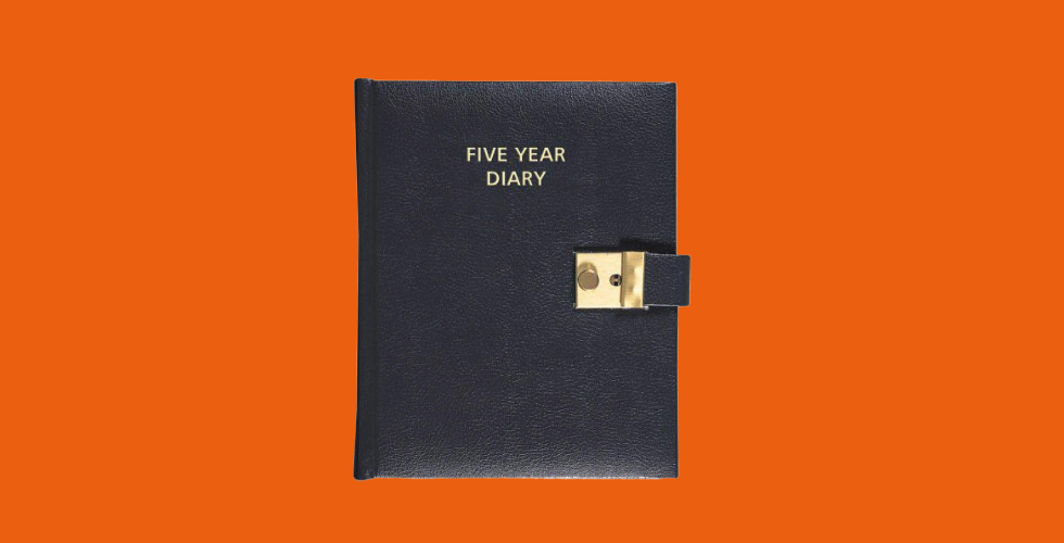 I five year journals sono diari che per ogni pagina hanno il numero del giorno, il mese e cinque spazi da riempire anno dopo anno. Sono adatti a persone che non tengono diari con grandi ambizioni letterarie, ma per annotare cose fatte, persone incontrate, libri letti e non dimenticarseli. La cosa interessante è mettere a confronto le cose fatte nello stesso giorno a un anno di distanza e poi a due, tre, quattro e cinque. Online se ne trovano in vendita di vari tipi: come questo, questo o questo.