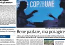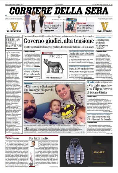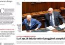 Ci sono notizie diverse in apertura sui giornali di oggi: alcuni si occupano delle tensioni sulla giustizia fra governo e magistratura dopo le parole del ministro della Difesa Crosetto dei giorni scorsi, che riprendono forza oggi dopo il rinvio a giudizio del sottosegretario alla Giustizia Delmastro per aver rivelato il contenuto di alcune conversazioni in carcere dell’anarchico Cospito, altri aprono sul prolungamento della tregua fra Hamas e Israele e sulla liberazione di altri ostaggi e prigionieri. La Stampa intervista il ministro dell’Interno Piantedosi sulla gestione dei migranti in Italia, il Manifesto segue lo sciopero di oggi nelle ferrovie dopo l’incidente di Cosenza di martedì sera, Avvenire e l’Unità aprono sulla condanna dell’Italia da parte della Corte europea per i diritti dell’uomo per la detenzione di quattro migranti minorenni, e Libero protesta per la decisione della regione Valle d’Aosta di cambiare nome a Cervinia, tornando al precedente Le Breuil. I giornali sportivi commentano la sconfitta del Napoli e il pareggio dell’Inter nelle partite di Champions League giocate ieri.