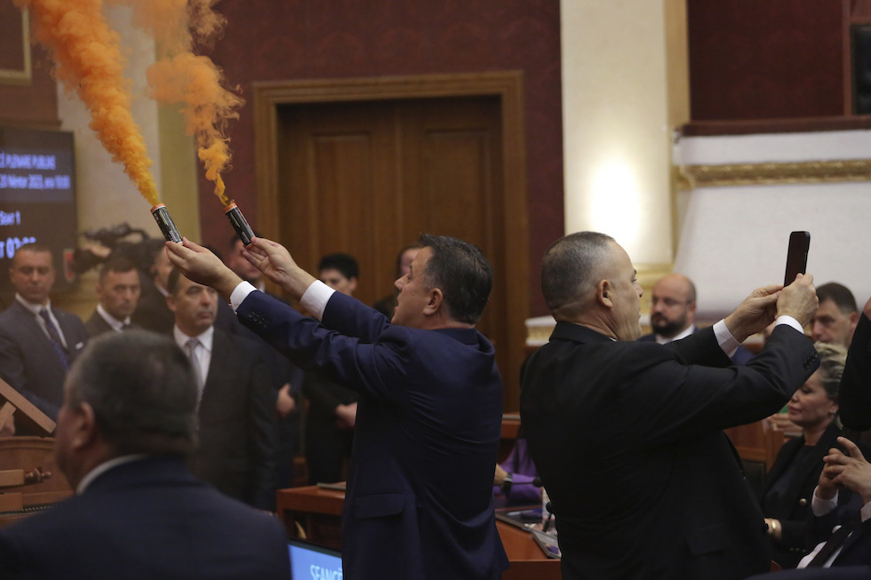 Nelle ultime settimane nel parlamento sono stati appiccati incendi e accesi fumogeni per protestare contro il primo ministro Edi Rama