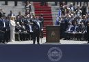 Milei è arrivato di fronte al parlamento argentino accompagnato dalla sorella minore Karina, che ha coordinato la sua campagna elettorale. Alla cerimonia erano presenti altri capi di stato e diversi leader di estrema destra, tra cui l’ex presidente brasiliano Jair Bolsonaro, il leader del partito spagnolo Vox, Santiago Abascal, e il primo ministro ungherese Viktor Orbán.
