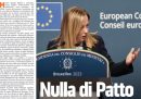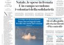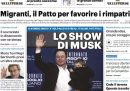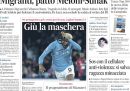 Le notizie principali in apertura sulla maggior parte dei giornali di oggi riguardano la partecipazione del primo ministro britannico Rishi Sunak, di quello albanese Edi Rama e dell’imprenditore Elon Musk ad Atreju, la festa dei giovani di Fratelli d’Italia. Si parla anche delle proteste per l’uccisione di tre ostaggi israeliani nella Striscia di Gaza da parte dell’esercito di Israele, della condanna in primo grado del cardinale Angelo Becciu per peculato e della morte di 61 persone migranti a causa di un naufragio al largo della Libia. Il Sole 24 Ore apre con un articolo sulla situazione dei taxi nelle grandi città, mentre il Manifesto dedica l’apertura alla morte di Toni Negri.