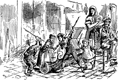 La tradizione di battere il Tió de Nadal in una stampa del Diciannovesimo secolo