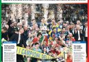 Questa selezione è quindi quasi sempre una selezione di notizie, più che di forma che è stata data alle notizie: di quello che è stato importante, o che i giornali hanno ritenuto importante, che spesso sono due cose differenti. Come confermano alcune prime pagine che già ci fanno battere la fronte come si fa davanti a una cosa che si era dimenticata. Ma non troverete in questa raccolta – 102 prime pagine su più di 15mila mostrate quest’anno sul Post – tantissime notizie durate lo spazio di un giorno o due (soprattutto di politica); non ci troverete i tanti titoli che – a causa della deriva da gioco di parole – suonano oggi incomprensibili perché non spiegano quale fosse la notizia (facciamo una eccezione per il Manifesto, precursore del genere e che ogni tanto indovina la battuta); non ci troverete i titoli slogan in difesa del governo e contro le opposizioni che sono la scelta quotidiana di alcune testate, o quelli sterilmente contro il governo di altre; non ci troverete le prime pagine che sembravano dare come imminenti le dimissioni di questo o quel membro del governo (Valditara, Santanché, Sgarbi) né quelle che sembravano dare come fondamentale la loro difesa; non ci troverete tutte le occorrenze di “apocalisse”, “terrore”, “bufera”, “calvario”, “allarme”, “choc”, “orrore”, “rabbia”, “lacrime”, “paura”, “morte”, “strage”, ma solo una loro quota inevitabile; non ci troverete qualche fatto storico che invece resterà ma che non ha trovato gran spazio sulle prime pagine italiane (il nuovo presidente argentino, per esempio); non ci troverete molte delle prime pagine sui femminicidi o sulle violenze contro le donne perché a metterle tutte si sarebbe coperto quasi ogni giorno dell’anno.