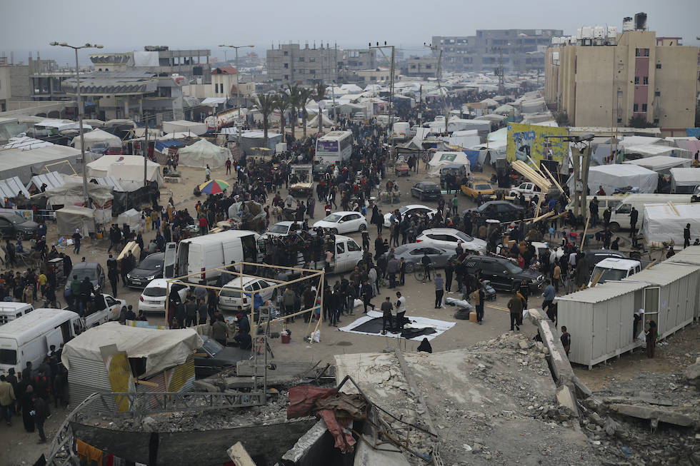 Palestinesi sfollati che arrivano a Rafah (AP Photo/Hatem Ali)