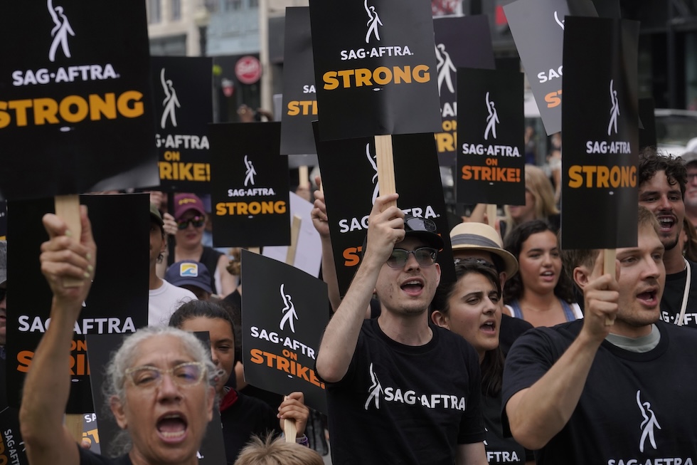 Il 13 luglio il sindacato che rappresenta 160mila tra attrici e attori statunitensi ha annunciato l’interruzione immediata del lavoro, provocando il blocco di centinaia di set cinematografici e televisivi e di altri vari eventi. Lo sciopero degli attori si è andato ad aggiungere a quello degli sceneggiatori, iniziato a maggio: è stata la prima volta dal 1960 che il sindacato degli sceneggiatori e quello degli attori americani (rispettivamente WGA e SAG-AFTRA) scioperavano contemporaneamente. Entrambi i sindacati hanno chiesto il rinnovo del contratto collettivo e migliori condizioni di lavoro. Il doppio sciopero ha creato enormi problemi, che sono proseguiti fino a novembre, quando infine è stato trovato un accordo.