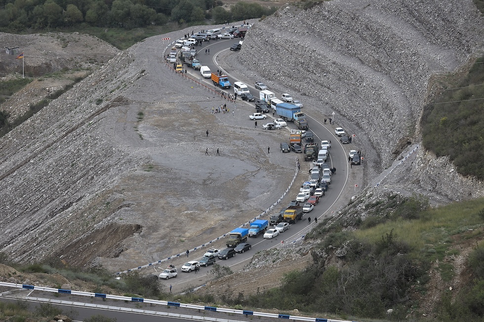 Persone che fuggono dal Nagorno Karabakh dopo l’invasione dell’Azerbaijan (AP Photo/Vasily Krestyaninov, File)