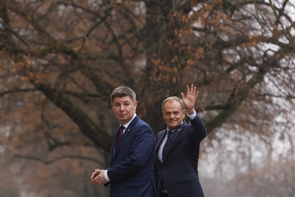Il nuovo primo ministro polacco Donald Tusk e il capo dello staff Jan Grabiec (AP Photo/Michal Dyjuk)