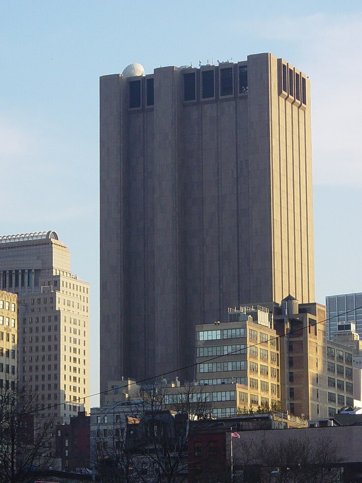 Nella parte meridionale di Manhattan, nell’area del “triangolo a sud di Canal Street” che da qualche decennio è conosciuta come Tribeca, dal 1974 c’è un edificio imponente, alto circa 170 metri, senza una sola finestra. Le sue pareti esterne sono composte di blocchi di cemento rivestiti di granito svedese, da cui spiccano sei grosse sporgenze a base rettangolare, necessarie per ospitare condotti dell’aria, scale e ascensori. Le uniche aperture verso l’esterno sono una serie di cappe di ventilazione. La notte non c’è nessuna luce ad illuminarlo: l’effetto è quello di un enorme pilastro buio che interrompe le tantissime luci degli edifici circostanti.