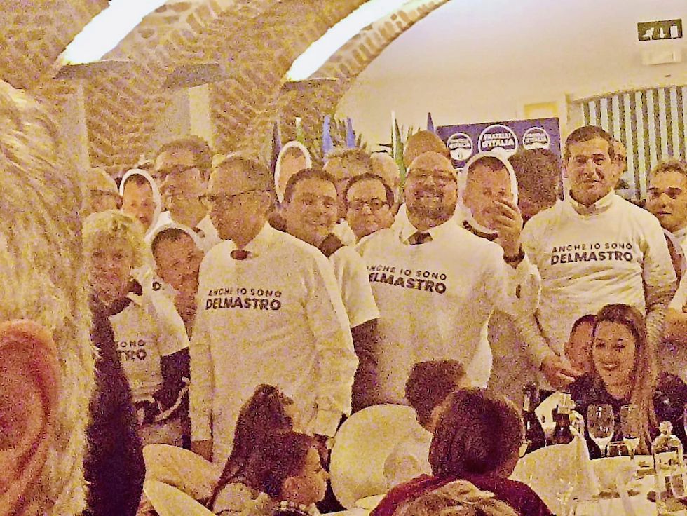 La cena è stata anche l’occasione per una grande dimostrazione di solidarietà verso Delmastro, che quattro giorni prima era stato rinviato a giudizio per avere rivelato documenti riservati legati al caso Cospito. Nella sala principale c’era un grande striscione con su scritto: «Siamo tutti Delmastro». Alcuni agenti della Polizia penitenziaria locale, iscritti al sindacato SINAPPE, hanno sfilato tra i tavoli indossando una maglietta con scritto «anche io sono Delmastro», tenendo in mano un cartoncino con la faccia del sottosegretario.
