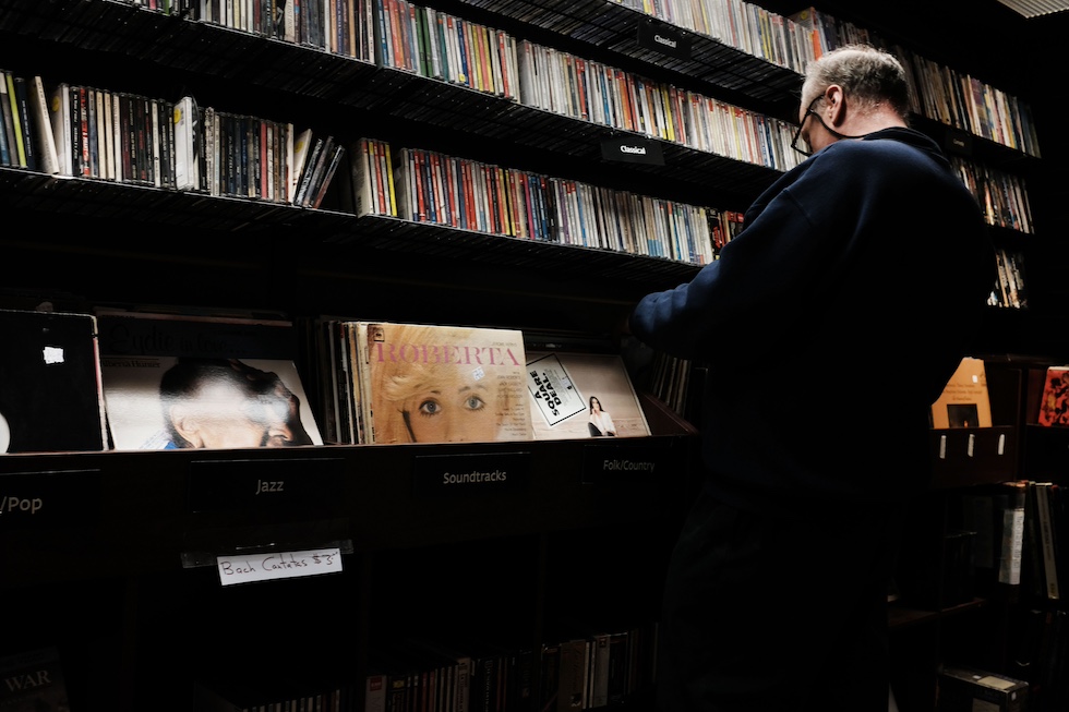 Un uomo in un negozio di dischi a New York, il 5 marzo 2019 (Spencer Platt/Getty Images)