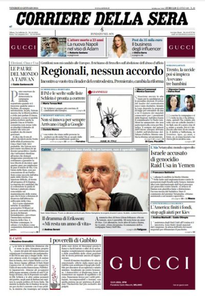 La causa contro Israele per genocidio, le candidature della destra alle regionali, e la malattia di Eriksson