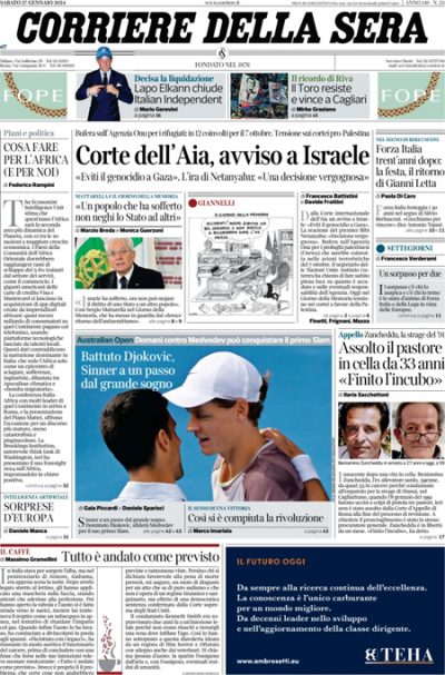 La Giornata della Memoria, la Corte internazionale di giustizia sull'accusa di genocidio a Israele, e Sinner in finale agli Australian Open