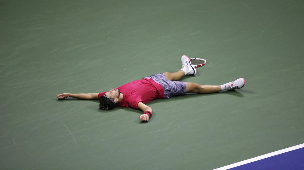 Thiem dopo la vittoria degli US Open nel 2020 (EPA/JASON SZENES)