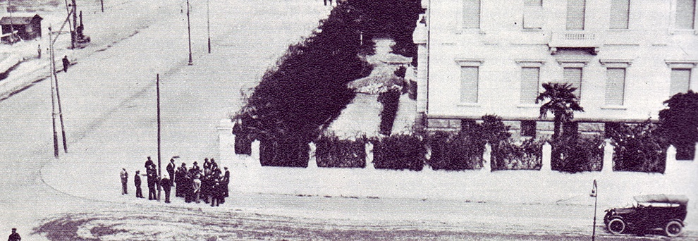 Sopralluogo di polizia sul Lungotevere Arnaldo da Brescia dove Matteotti fu rapito, 1924 (via Wikimedia)