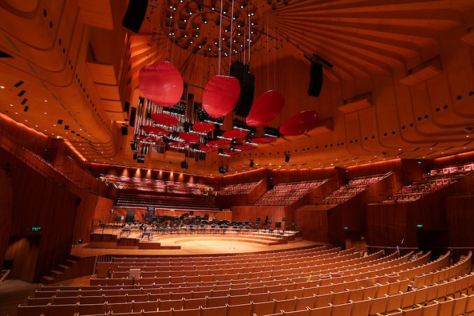 La Sydney Opera House è uno degli edifici più iconici del mondo, grazie alle sue enormi strutture a guscio in calcestruzzo che ne definiscono la forma avveniristica. Costruito negli anni Sessanta su un progetto iniziale dell’architetto danese Jørn Utzon, che si ispirò in parte proprio alla Philharmonie di Berlino, la progettazione e soprattutto la realizzazione del teatro furono estremamente accidentate, a causa di ritardi, intoppi e di costi assai superiori a quelli previsti. Utzon si dimise dopo alcuni anni, e il progetto fu poi portato a termine da Peter Hall, che fu il principale responsabile di come furono realizzati gli interni.