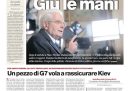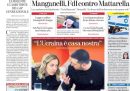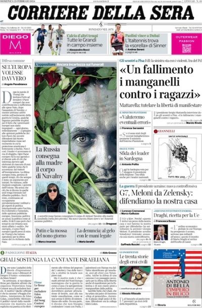 Gran parte delle prime pagine di oggi dedica l’apertura alle dichiarazioni del presidente della Repubblica Sergio Mattarella, che sabato ha fatto un richiamo pubblico piuttosto duro al ministro dell’Interno Matteo Piantedosi sulle manganellate della polizia agli studenti in Toscana, cosa inusuale se si considerano i suoi modi abitualmente cauti. Le altre notizie riguardano il G7 a Kiev, dove si trovava anche la presidente del Consiglio Giorgia Meloni che ha annunciato un accordo bilaterale con l’Ucraina per la cooperazione nella difesa e nella sicurezza, e le elezioni regionali e comunali in Sardegna.