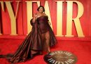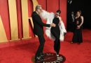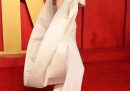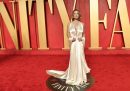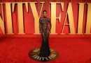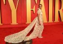 Ci sono vari motivi per cui vale la pena raccogliere – dopo le foto più belle della serata e quelle del red carpet – anche le foto di chi arriva alla consueta festa di Vanity Fair dopo gli Oscar: è la più frequentata e gli attori e le attrici che hanno vinto si presentano spesso con l’Oscar in mano; solitamente chi prima era alla premiazione fa un rapido cambio d’abito, ed è quindi l’ultima occasione per commentare le scelte stilistiche degli invitati. Sono quel tipo di immagini che a guardarle in fila sembra di sfogliare un album di figurine, con la stragrande maggioranza delle persone ferma immobile in posa sopra un segnaposto indicato sul tappeto.