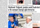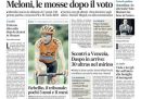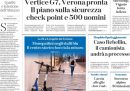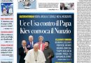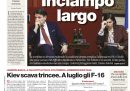 Sulla maggior parte dei giornali di oggi l’apertura è dedicata ai commenti e alle valutazioni sul voto per le elezioni regionali in Abruzzo di domenica scorsa, con la vittoria del candidato di destra Marsilio. La Stampa si occupa invece della proposta di istituire una commissione parlamentare sui presunti “dossier” su politici e personaggi famosi sui quali sta indagando la procura di Perugia, il Sole 24 Ore e il Giornale titolano sulla bozza di decreto sulla riscossione dei debiti fiscali approvata ieri dal Consiglio dei ministri, il Fatto e Avvenire aprono sui tentativi di raggiungere una tregua fra Russia e Ucraina e sulle polemiche per le parole di Papa Francesco sulla bandiera bianca, e il Dubbio e il Riformista commentano la sentenza di primo grado del processo per l’inchiesta Consip che ha assolto l’ex ministro Luca Lotti e Tiziano Renzi, il padre di Matteo Renzi.