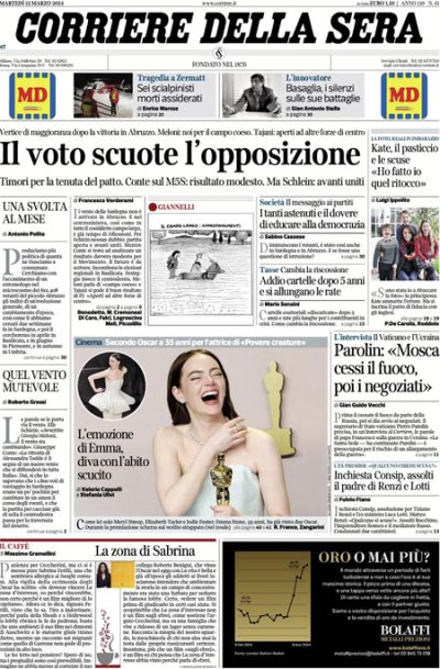 I commenti alle elezioni regionali in Abruzzo, i vincitori degli Oscar, e la foto ritoccata di Kate Middleton