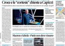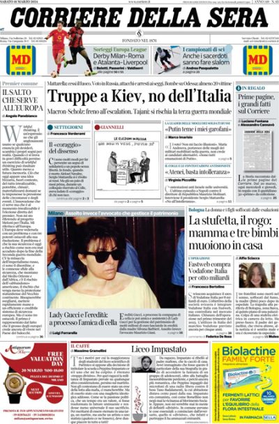 La notizia principale in apertura sui giornali di oggi è l’incontro a Berlino fra il cancelliere tedesco Scholz, il presidente francese Macron e il primo ministro polacco Tusk sul sostegno militare all’Ucraina nella guerra con la Russia, dopo la proposta di Macron di una partecipazione attiva nel conflitto a fianco dell’esercito ucraino. Il Sole 24 Ore titola invece sui dati sull’inflazione a febbraio, il Messaggero apre sulle conseguenze sul traffico mercantile marittimo degli attacchi degli houthi nel mar Rosso, il Manifesto e il Dubbio si occupano delle elezioni in Russia, la Verità della vicenda dei presunti “dossier” su politici e personaggi famosi, Libero della contestazione per la partecipazione del direttore di Repubblica Molinari, accusato di essere filoisraeliano, a un’iniziativa all’università di Napoli poi annullata, e Domani della gestione delle richieste di asilo delle persone migranti arrivate in Italia.