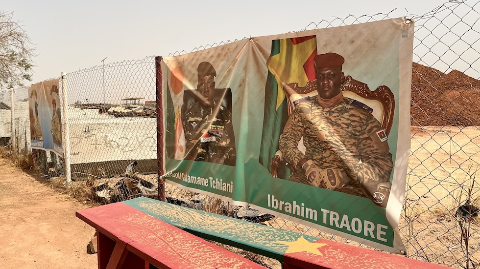 Un poster dei ”presidenti ad interim“ di Niger e Burkina Faso, Omar Tchiani e Ibrahim Traoré (Christina Peters/dpa)
