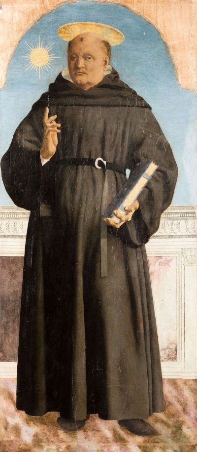 In una mostra al museo Poldi Pezzoli di Milano sono esposti per la prima volta insieme gli otto pannelli restanti del “polittico agostiniano”, una grande pala d’altare composta da varie sezioni che il pittore rinascimentale Piero della Francesca realizzò tra il 1454 e il 1469 per una chiesa che allora apparteneva all’ordine degli agostiniani a Sansepolcro, in provincia di Arezzo. La pala fu smantellata il secolo dopo, probabilmente a causa dello spostamento degli agostiniani altrove: alcuni pezzi sono stati poi trovati alla fine dell’Ottocento e sono finiti in diversi musei del mondo, altri invece non sono mai stati trovati.
