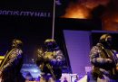 Davanti al teatro è arrivata un’enorme quantità di mezzi, tra polizia, ambulanze, mezzi dei pompieri ed elicotteri. Secondo i media russi sono intervenute anche le forze speciali, che sono entrate nell’edificio. Sempre i media russi, che citano testimoni sul posto, dicono che ci sono state almeno due esplosioni, non è chiaro causate da cosa: l’ipotesi è che siano state lanciate delle granate o altri ordigni esplosivi di qualche tipo, ma le informazioni sono ancora molto confuse. Si è sviluppato anche un grosso incendio. Sul posto sono stati inviati elicotteri per cercare di spegnerlo: le autorità russe hanno fatto sapere che l’incendio è sotto controllo.
