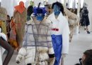 I sarti e le sarte di Dior, che uscirono alla fine della sfilata per l’autunno/inverno 2011/12 a Parigi al posto di John Galliano, che era stato licenziato pochi giorni prima, 4 marzo 2011 (AP Photo/Francois Mori)