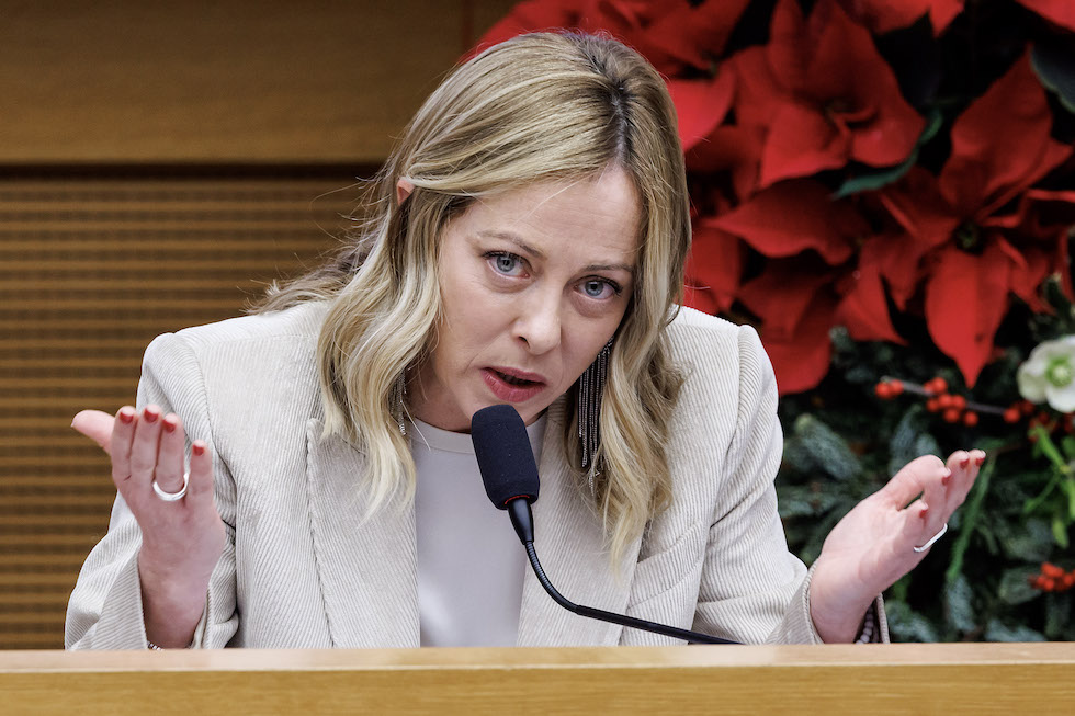 Conferenza stampa di fine anno del presidente del Consiglio Giorgia Meloni, il 4 gennaio 2024 (Roberto Monaldo/LaPresse)