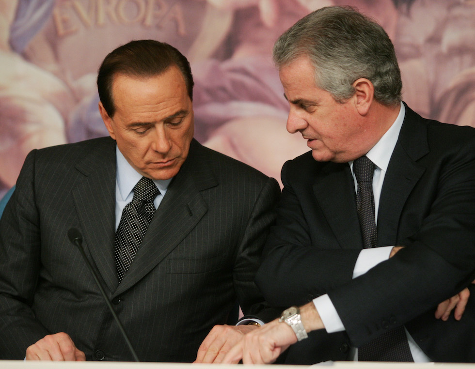 Claudio Scajola insieme a Silvio Berlusconi, durante una conferenza stampa a Palazzo Chigi nel marzo del 2006 (GIUSEPPE GIGLIA/ANSA)