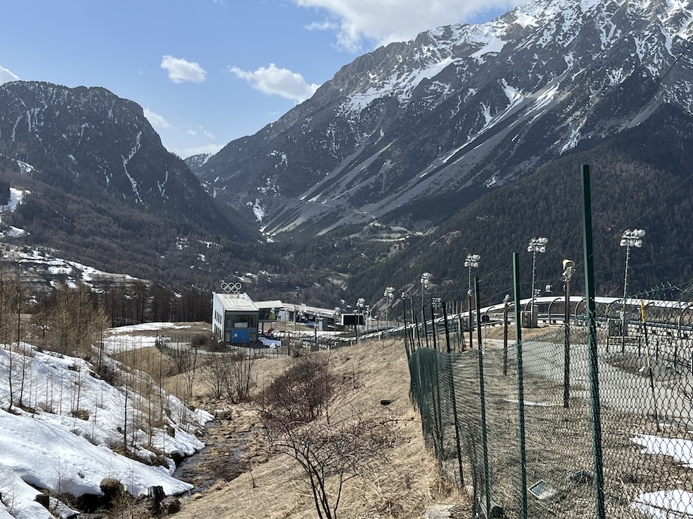 L’ingresso della zona olimpica di Cesana Pariol (foto Il Post)