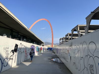 L’accesso alla passerella e all’arco olimpico di Torino 2006 dalle Arcate ex MOI (foto Il Post)