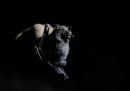 Allo zoo di Londra ha aperto una nuova sezione dedicata a rettili e anfibi, che è stata l’occasione per fotografare due tipi di rane: le rane artigliate del lago Oku e una rana dal colore blu elettrico conosciuta come indio di okopipi. Allo zoo di Miami invece è stato fotografato il primo esemplare di podargo strigoide che è nato nella struttura un mese fa: è un uccello simile alle civette con le quali viene spesso confuso. Come era prevedibile poi, in vista di Pasqua, alcuni zoo si sono attrezzati con uova pasquali da offrire agli animali, come nel caso del macaco che se ne porta via due e della mangusta che ne studia un’altra. Poi cani e uccelli addestrati, un capricorno del Giappone e un grande artibeo, un pipistrello.