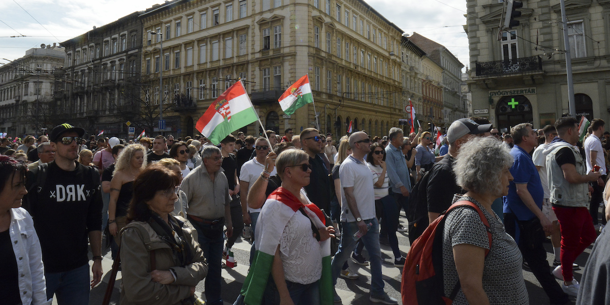 Sabato decine di migliaia di persone hanno partecipato a una manifestazione nel centro di Budapest, in Ungheria, contro il governo semi-autoritario e di estrema destra di Viktor Orbán. I manifestanti hanno marciato verso il parlamento e alcuni di loro gridavano «non abbiamo paura» e «Orbán dimettiti»; molti indossavano i colori nazionali rosso, bianco e verde o portavano la bandiera nazionale, simbolo di cui il partito di Orbán, Fidesz, ha cercato di fatto di appropriarsi negli ultimi due decenni.