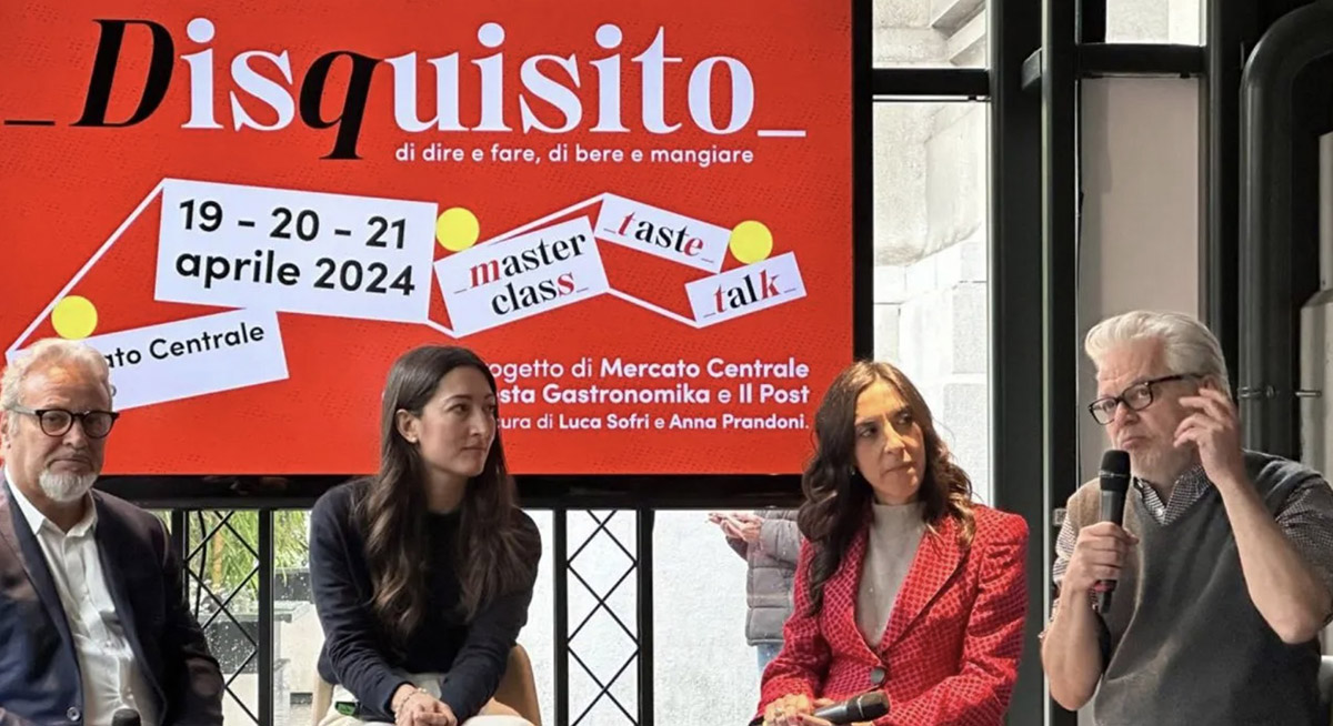 Umberto Montano, fondatore e presidente di Mercato Centrale, con Valentina Fioravanti, Anna Prandoni e Luca Sofri alla presentazione di “Disquisito”.