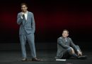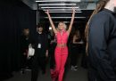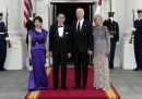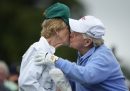 C’è un’insolita incursione di golfisti, nella raccolta di persone che valeva la pena fotografare in settimana: per via del Masters Tournament di Augusta, uno dei più importanti tornei nel golf professionistico, sono stati fotografati Tiger Woods mentre prova a prendere un pallina al volo, il neozelandese Ryan Fox alle prese con un momento di pianto della figlia e l’ex golfista Jack Nicklaus che bacia la moglie Barbara. Poi ci sono Sandra Oh alla prima della serie tv Il simpatizzante, Angelina Jolie a quella dello spettacolo teatrale The Outsiders e Jeff Bezos a una cena di Stato alla Casa Bianca in onore del primo ministro giapponese Fumio Kishida (a sua volta fotografato per quell’occasione con la moglie e i Biden). Una menzione anche a Willem Dafoe e Michael Keaton, ad Anya Taylor-Joy e Chris Hemsworth, al nuovo primo ministro dell’Irlanda e al ritorno di Melania e Donald Trump. Per finire con, ancora una volta, Zendaya a un photocall per Challengers a Parigi e Luca Guadagnino a uno a Londra.