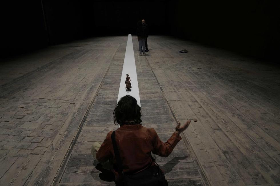 “Due qui / To hear” dell’artista Massimo Bartolini nel padiglione Italia alla 60esima edizione della Biennale d’arte di Venezia, 16 aprile 2024 (AP Photo/Luca Bruno)