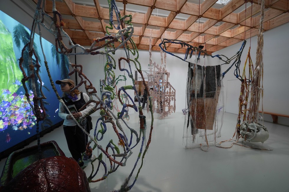 Il padiglione della Francia curato dall’artista Julien Creuzet per la 60esima edizione della Biennale d’arte di Venezia, 16 aprile 2024 (AP Photo/Luca Bruno)