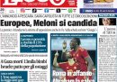 Tutti i giornali di oggi titolano in apertura sull’intervento della presidente del Consiglio Giorgia Meloni in chiusura della conferenza programmatica di Fratelli d’Italia a Pescara, durante il quale ha annunciato che si candiderà come capolista in tutte le circoscrizioni alle prossime elezioni europee dell’8 e 9 giugno. Fa eccezione la Stampa, che apre con un’intervista al ministro dell’Interno Piantedosi sulla gestione delle manifestazioni di questi giorni di protesta per la situazione nella Striscia di Gaza, mentre i giornali sportivi si occupano della giornata di festeggiamenti a Milano per la vittoria dello scudetto nel campionato di Serie A maschile di calcio da parte dell’Inter.