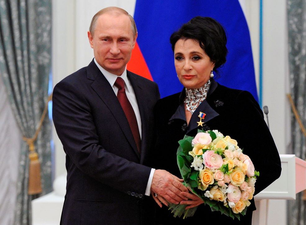 Il presidente russo Vladimir Putin e la presidente della federazione russa di ginnastica ritmica Irina Viner (Mikhail Klimentyev/RIA-Novosti, Kremlin Pool Photo via AP, File)