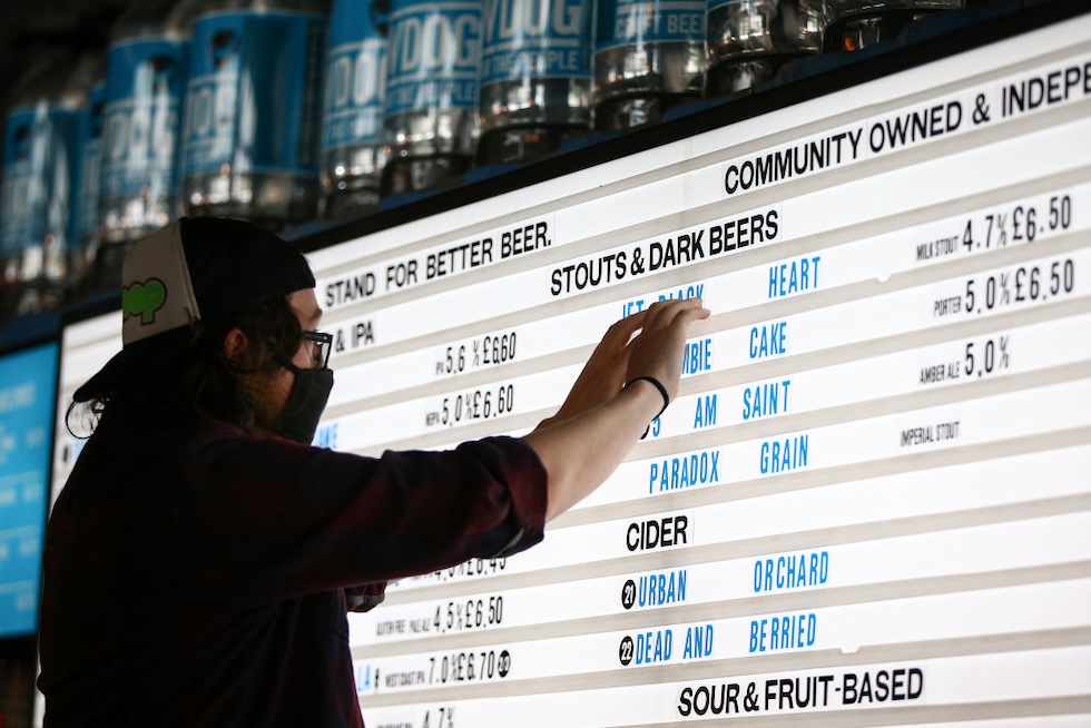Un addetto del birrificio BrewDog di Tower Hill a Londra (Hollie Adams/ Getty Images)