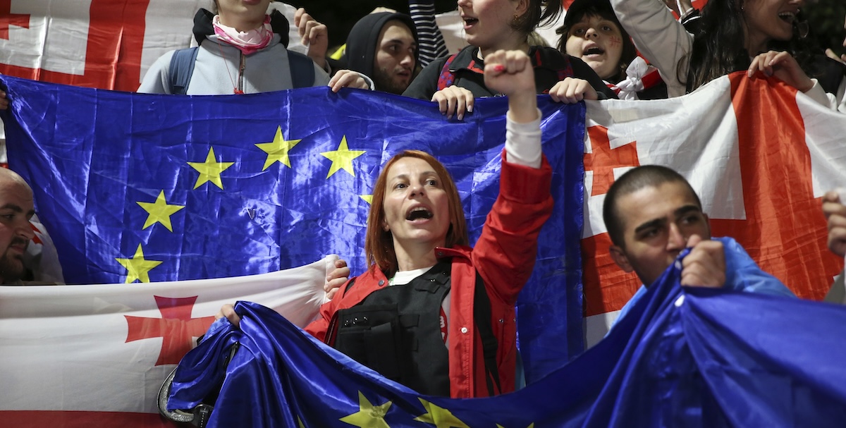 A Tbilisi, in Georgia, decine di migliaia di persone hanno protestato contro la proposta di legge sui cosiddetti “agenti stranieri”