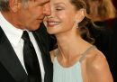 Anche la storia con Ford venne ampiamente criticata dai giornali scandalistici. Si incontrarono ai Golden Globe del 2002, lei aveva 38 anni e lui 60, 22 in più: quando Ford chiese al suo agente di presentarli lei pensò «uh che vecchio lascivo. Ma cosa fa?»; poi iniziarono a parlare e «allora mi incantò davvero». Per sbaglio lei gli versò del vino addosso o forse «io lo versai a lei o qualcosa del genere» ha ricordato Ford, «e quello sigillò la nostra unione»: da allora sono stati sempre insieme.