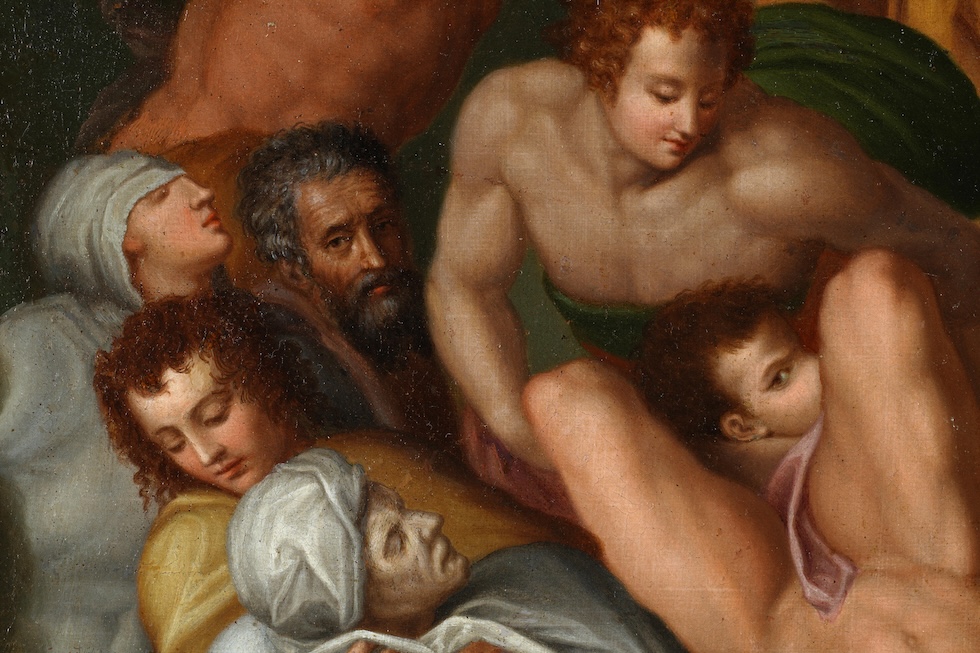 Anche la ricostruzione del dipinto di Allori, che secondo Olivares sarebbe stato ispirato dalla tela conservata a Ginevra, sembra non essere attendibile. Giannini ritiene che semmai sia la tela di Ginevra a essere una copia della pala di Allori, «che a sua volta era un omaggio dichiarato all’opera di Michelangelo», come peraltro sostenuto dal critico d’arte cinquecentesco Giorgio Vasari, contemporaneo di entrambi.