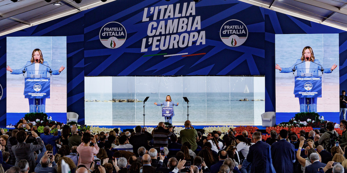 Questa settimana Fratelli d’Italia, il partito della presidente del Consiglio Giorgia Meloni, ha pubblicato il suo programma per le elezioni europee dell’8 e del 9 giugno. È composto da 15 capitoli tematici, preceduti da un’introduzione generale intitolata “Manifesto per l’Europa dei popoli, della libertà e delle identità”. I capitoli parlano di molti temi, tra cui il lavoro, l’agricoltura, la sanità: ma su alcuni aspetti, specialmente quelli economici, gli obiettivi del programma sono già per certi versi superati, perché riguardano questioni molto importanti su cui in realtà i governi e le istituzioni dell’Unione Europa hanno appena raggiunto accordi vincolanti. Fratelli d’Italia si propone di modificare o migliorare riforme che sono appena state approvate, e su cui è improbabile che si potrà intervenire di nuovo nei prossimi cinque anni.