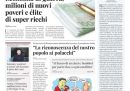I principali giornali di oggi hanno titoli dedicati a temi diversi: i possibili problemi nel governo di Israele per il Corriere, l’inchiesta di Genova sul presidente della Liguria Giovanni Toti su Repubblica, un’intervista a Ilaria Salis sulla Stampa, i buoni risultati della Borsa sul Sole 24 Ore. La gran parte dei giornali riserva uno spazio in prima pagina al ritorno in Italia di Chico Forti: è il titolo di apertura soprattutto dei giornali conservatori, con toni celebrativi, il Fatto Quotidiano è invece polemico sull’accoglienza riservata a Forti. Il Manifesto apre sulla manifestazione dei movimenti LGBT+ in programma a Roma, i quotidiani sportivi sui problemi societari della squadra di calcio dell’Inter.