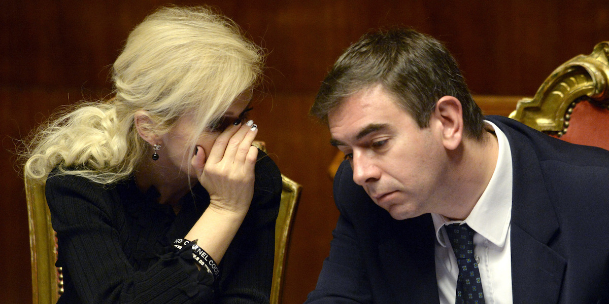 Il presidente del Senato Pietro Grasso con Serafin durante l’esame del bilancio di Palazzo Madama, il 24 settembre 2014 (GIUSEPPE LAMI/ANSA)