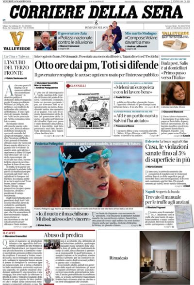 Ci sono notizie diverse in apertura sui giornali di oggi: l’interrogatorio da parte dei magistrati che indagano sulla presunta corruzione in Liguria del presidente della regione Giovanni Toti, il decreto che dovrebbe essere discusso oggi dal Consiglio dei ministri sulla sanatoria edilizia per regolarizzare abusi interni e aumenti di superficie fino al 5 per cento delle abitazioni, la campagna elettorale per le prossime elezioni europee, le proteste nelle università contro la guerra nella Striscia di Gaza, l’andamento dei combattimenti in Ucraina, il sistema fiscale dopo la sospensione del decreto che istituiva il “redditometro”, lo strumento di accertamento che confronta lo stile di vita con i redditi dichiarati. I giornali sportivi si occupano del mercato degli allenatori delle squadre di Serie A di calcio in vista del prossimo campionato.