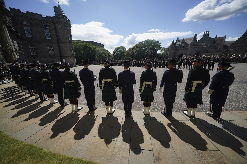 Militari britannici durante l’incoronazione di re Carlo III, nel luglio 2023 (Yui Mok/Pool Photo via AP)