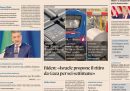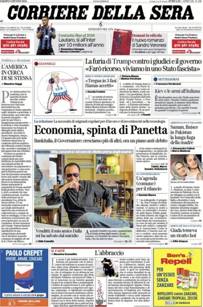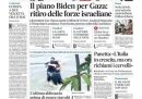Le notizie principali in apertura sui giornali di oggi sono le reazioni alla sentenza di condanna dell’ex presidente degli Stati Uniti Donald Trump, la relazione del governatore della Banca d’Italia Panetta che ha presentato le prime considerazioni finali dopo la sua nomina, e il piano per una tregua nella Striscia di Gaza presentato ieri dal presidente degli Stati Uniti Biden. La Verità segue la campagna elettorale per le prossime elezioni europee, Libero titola sulla nomina a Cavaliera del lavoro di Marina Berlusconi, e Domani si occupa dei lavori per la costruzione dei centri per migranti in Albania.
